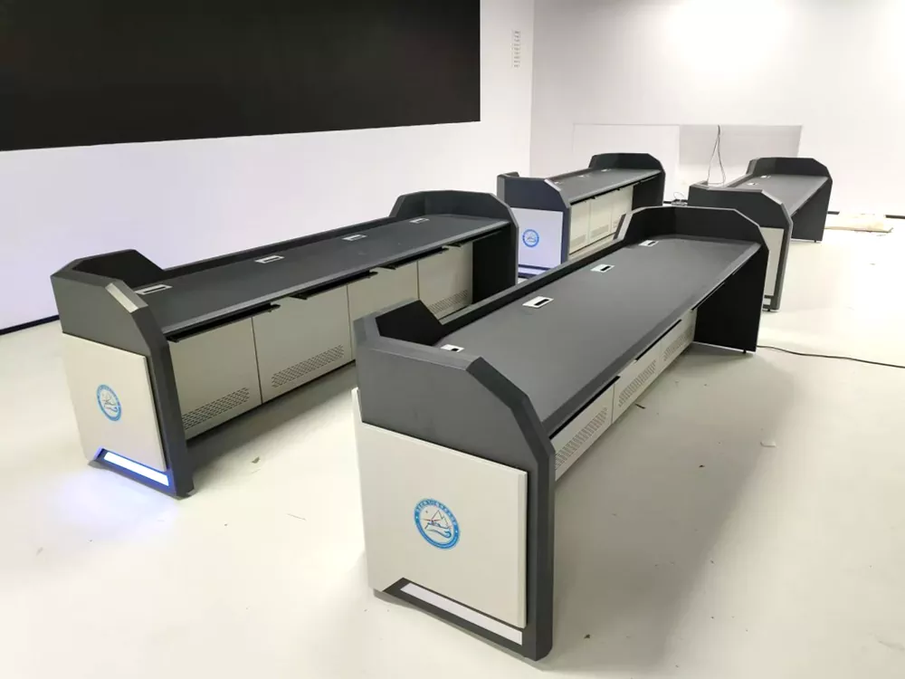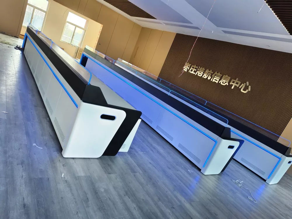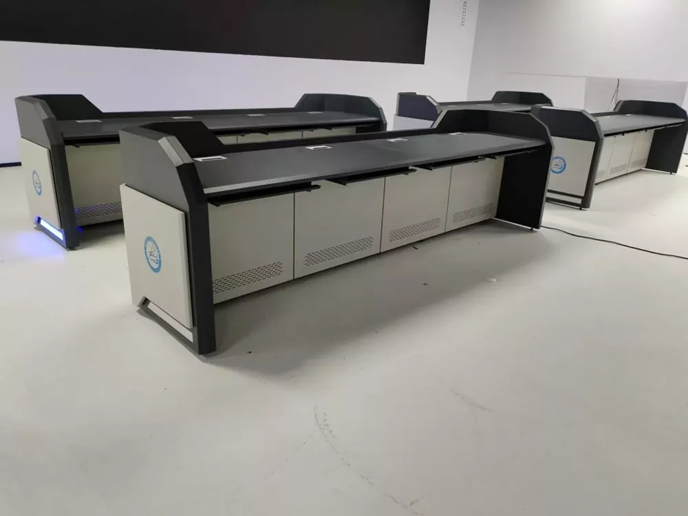Produkten har en modulär design, med en enda enhet som grundenhet som kan förlängas flexibelt i längd för att anpassas till olika rumsliga layouter. Dess rena och enkla raka form maximerar utnyttjandet av övervakningsrumsutrymmet samtidigt som det underlättar organiserad layout med flera arbetsstationer och personalsamarbete. Tillverkad av höghållfast kallvalsad stålplåt genom precisionsbearbetning av plåt, ytan är behandlad med elektrostatisk pulverlackering, vilket gör den rostsäker, slitstark och lätt att rengöra och underhålla.